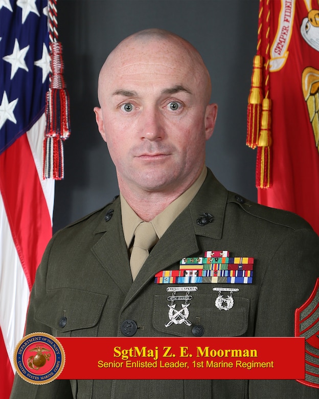 Sergeant Major Zane E. Moorman assumed his current post as the Command Senior Enlisted Leader for 1st Marine Regiment in April 2026.
