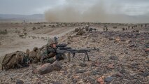 U.S. Marine Corps Cpl. Brandon Thein, right, and U.S. Marine Corps Lance Cpl. John Jennings with 2nd Battalion, 4th Marines sight into a weapon during Summer Fury at Yuma, Ariz., Aug. 5, 2017.