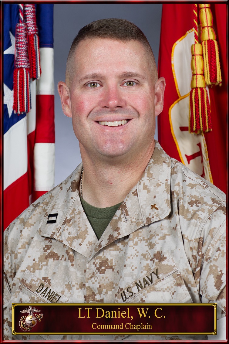 In July 2012 LT Daniel was commissioned as an Ensign in the Chaplain Candidate Program Officer program of the United States Navy. In July 2014 he was promoted to Lieutenant Junior Grade, superseding into the Navy Chaplain Corps. On 20 November 2014 he graduated from the Naval Chaplaincy School and Center at Ft. Jackson, South Carolina. On 01 December 2014 he reported to 1st Tank Battalion, 1st Marine Division in MCAGCC, Twentynine Palms, CA, serving as Command Staff Chaplain. On 01 June 2015 he was reassigned to 2d Battalion, 7th Marines to serve as Command Staff Chaplain for the entirety of their deployment cycle. On 01 July 2015 he was promoted to the rank of Lieutenant.